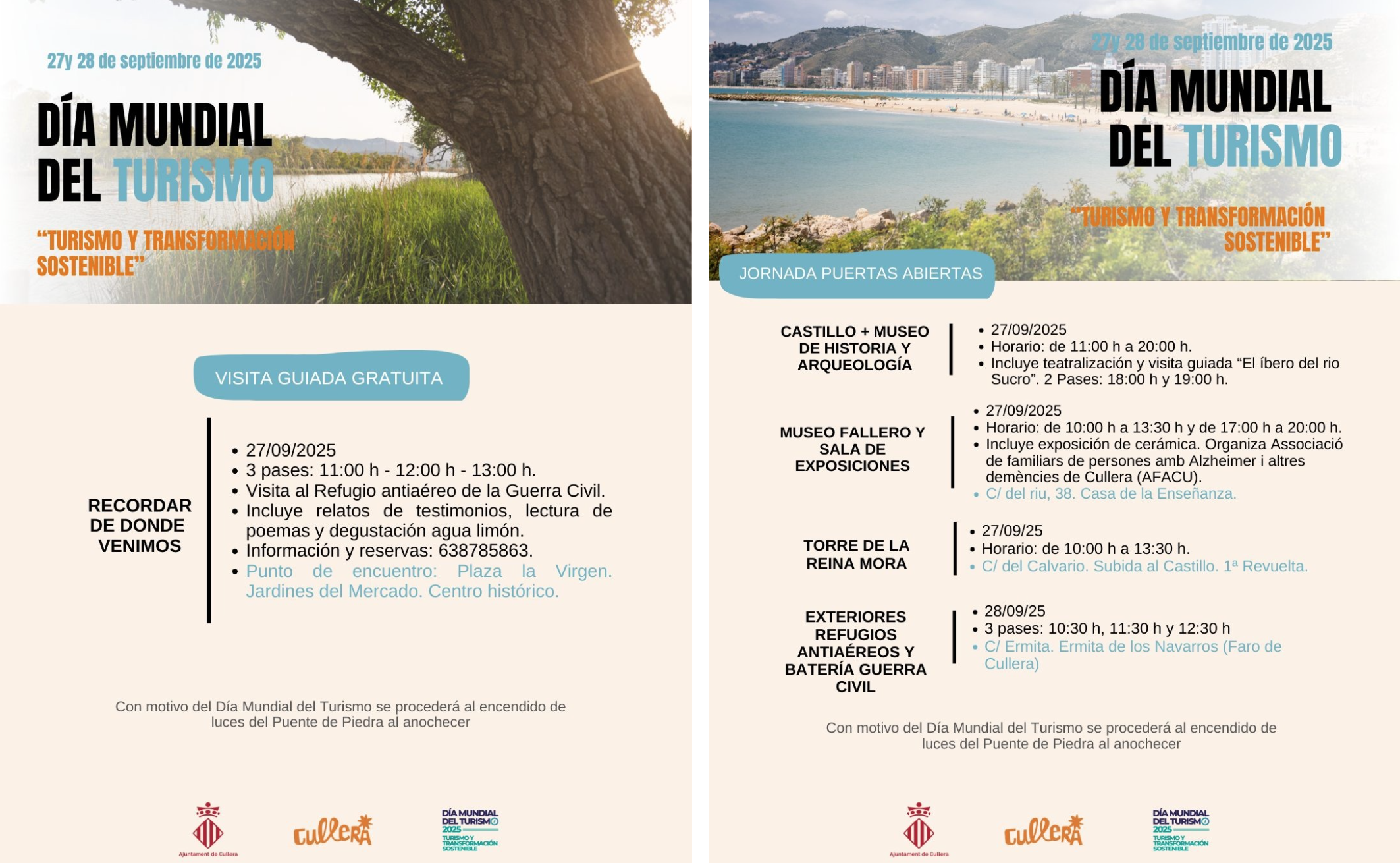 Cullera celebra el Día Mundial del Turismo, los próximos 27 y 28 de septiembre, con un completo programa de actividades culturales, visitas guiadas gratuitas, jornadas de puertas abiertas en museos, teatralizaciones históricas y mucho más. Tenéis más información de los eventos programados en la agenda de Cullera.