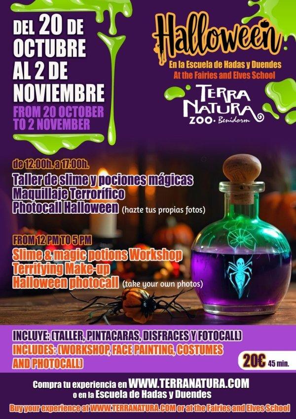 Si buscáis pasar un día divertido sin la necesidad de alojarse en un hotel o camping, os recomendamos celebrar Halloween en Terra Natura Benidorm. El parque celebra su 20 aniversario con un Halloween de ultratumba lleno de magia, retos, disfraces y experiencias con animales los días 25, 26 de octubre y 1 de noviembre?. Difruta de la tematización, los animales misteriosos y la visita de personajes de película como Beetlejuice o Miércoles Addams. Además, habrá talleres especiales como el de pociones mágicas en la escuela de hadas, pintacaras, shows de magia del Mag Malastruc...